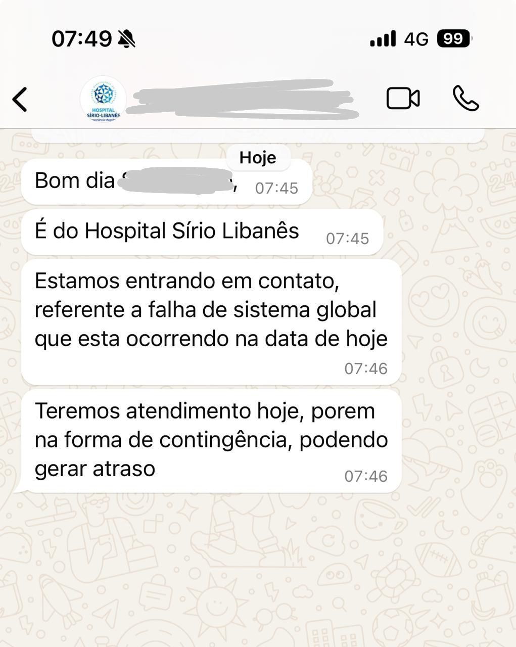 O hospital chegou a utilizar os serviços do WhatsApp para se comunicar e reportar o problema para os pacientes. Veja: